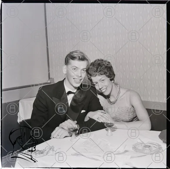 par, fest, kläder, kostym, klänning, cocktail, glas, bord, leende, 1950-tal, svartvitt, elegans, middag, romantik, smycken, inredning, socialt, nöje, stil, fotografi