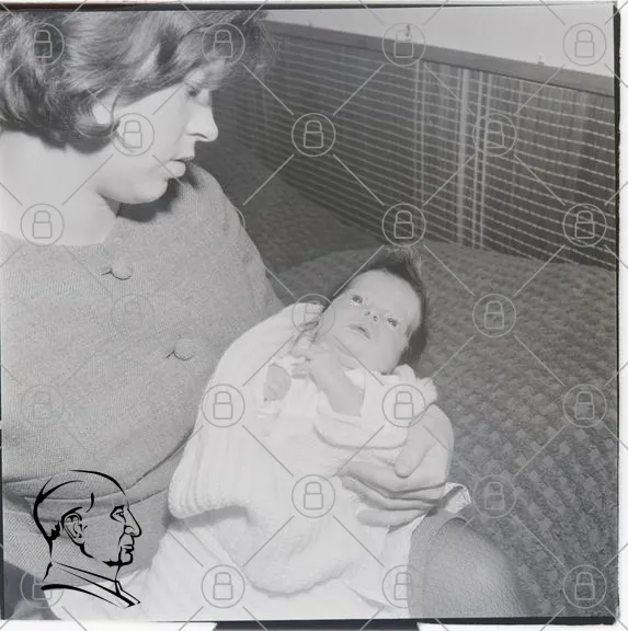 kvinna, baby, soffa, svartvitt, familj, kärlek, omsorg, barn, mjuk, kläder, hem, interiör, 1960-tal, ansikte, uttryck, närhet, moder, barnvård, mjukhet, minnen, nostalgi
