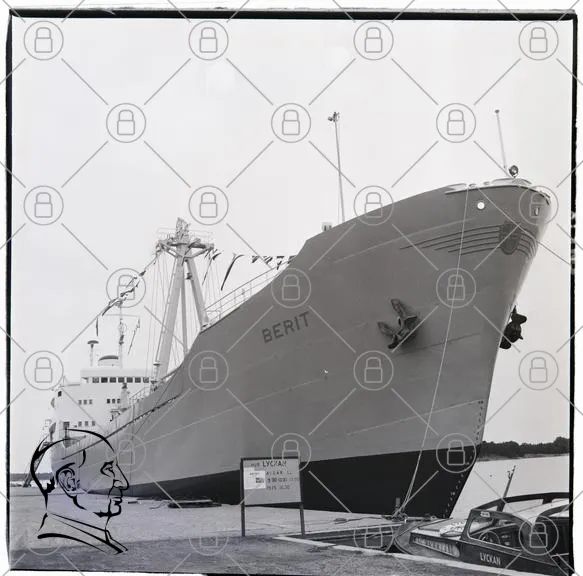 fartyg, Berit, hamn, lastfartyg, svartvit, skepp, kaj, båtar, skylt, lycka, sjöfart, transport, marin, last, ankar, mast, segel, vatten, industri, byggnad, hav, kajplats, fartygsnamn, sjö, lastning, passagerare, båt, rederi, historia, foto