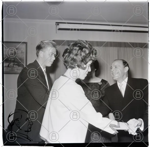 fest, kläder, 1960-tal, dans, människor, leende, svartvitt, inomhus, socialt, interaktion, stil, elegans, festligheter, hår, kostymer, kvinnor, män, relationer, glädje, samvaro, traditioner