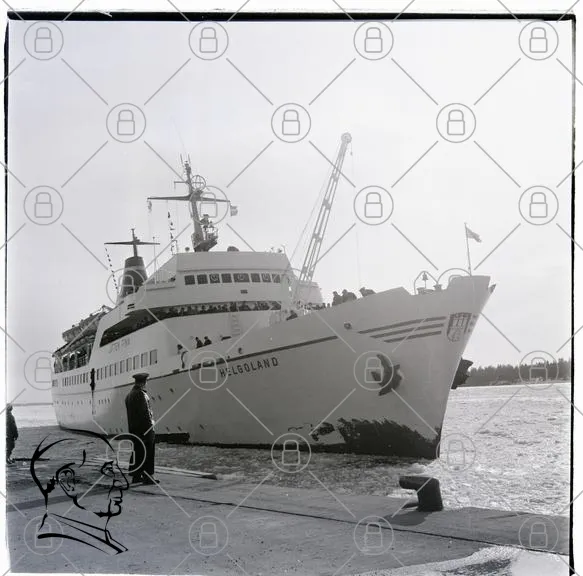 fartyg, Helgeland, hamn, passagerare, sjöfart, båt, kaj, resande, flagga, last, svartvitt, vatten, transport, kryssning, skepp, kapten, mast, ankomst, avfärd, landskap, byggnader, människor, hav, semester, turism, historia, 1900-tal, skärgård, Norge, sjö