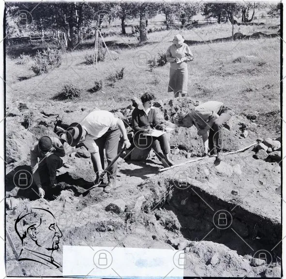 arkeologi, utgrävning, människor, gräva, fältarbete, historisk plats, forskning, jord, verktyg, anteckningar, träd, sommar, landskap, grupparbete, vetenskap, arkeologer, utomhus, studier, dokumentation, gräs