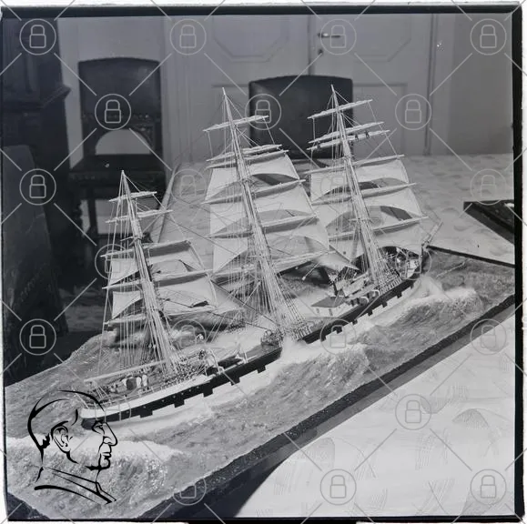 modell, segelbåt, skepp, trä, detaljer, hantverk, maritim, sjöfart, historia, inredning, bord, stolar, vågor, segel, skala, konstverk, båt, marin, modellbygge, handgjord, traditionell, design, sjö, hav, båtmodell, dekoration, hobby, nostalgi, fotografi, svartvit