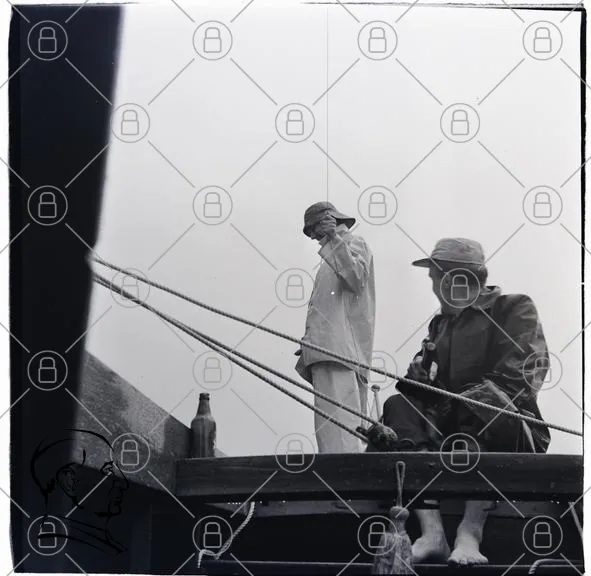 fiskare, båt, rep, flaska, hatt, regnkläder, hav, fiske, brygga, man, vatten, fiskeutrustning, utomhus, aktivitet, kläder, skor, fiskenät, fiskeväder, fiskeplats, fiskeutrustning