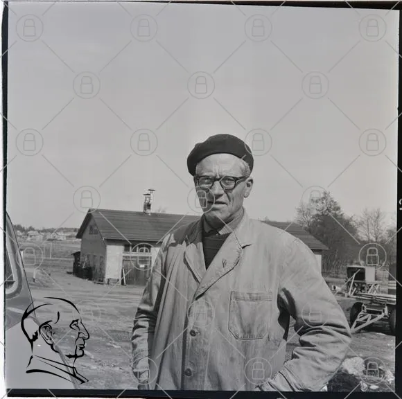 man, glasögon, hatt, arbetskläder, svartvitt, gammal, utomhus, byggnad, landskap, porträtt, 1900-tal, traditionell, verkstad, rural, svensk, fotografi, historia, person, stil, ansiktsuttryck