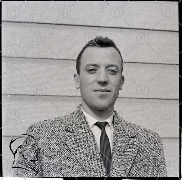 man, svartvitt, porträtt, kostym, slips, 1950-tal, kläder, stil, ansikte, bakgrund, fotografi, vintage, ungdom, självsäker, mode, hår, uttryck, stående, person, manlig