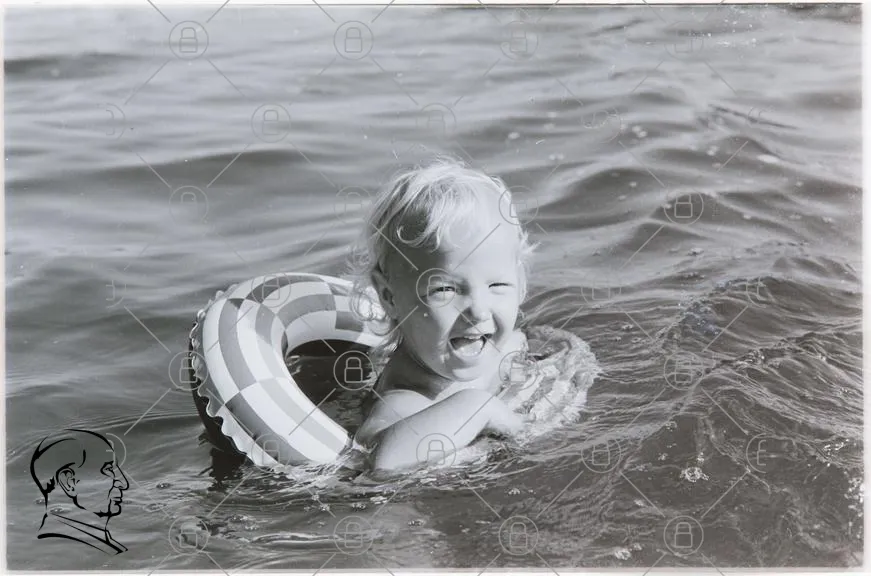 barn, simma, badring, skratt, vatten, sommar, lek, nöje, svartvit, glädje, ung, familj, strand, sol, rolig, barndom, frihet, natur, aktivitet, minnen