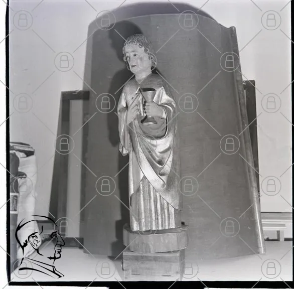 staty, skulptur, religiös, konst, medeltid, trä, helgon, kyrka, artefakt, kulturarv, hantverk, gammal, tradition, belysning, detaljer, kläder, kopp, ansikte, uttryck, bas, pedestal