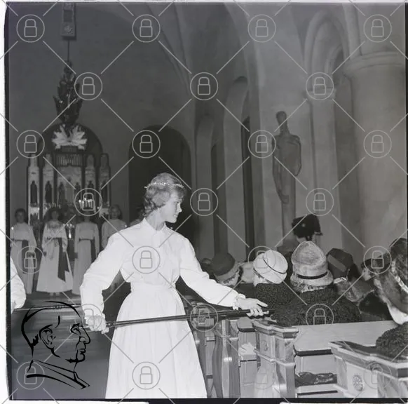 kyrka, gudstjänst, kvinna, vit klänning, ljus, publik, staty, altar, tradition, högtid, gammal bild, svartvitt, kläder, hattar, ceremonin, skådespelare, ljus, andakt, samling, kultur, historia, festligheter, stämning, gemenskap, skådespel, scen, åskådare, rituell, medeltid, konstverk