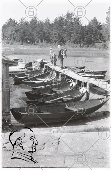 båtar, brygga, vatten, skog, människor, barn, svartvitt, natur, fiske, sommar, trä, landskap, båtliv, kajak, roddbåt, stillhet, rekreation, familj, tradition, utomhus, avkoppling