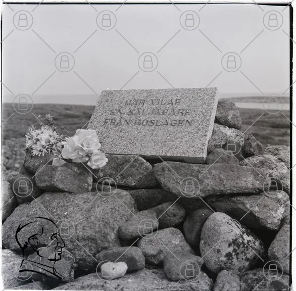 sten, minnesmärke, blommor, klippor, hav, landskap, grav, Roslagen, natur, historia, monument, sorg, stillhet, plats, kultur, tradition, fotografi, svartvitt, stenblock, växter, symbol, respekt, lugn, minne, avsked, skärgård, svensk, landsbygd, vacker, enkelhet