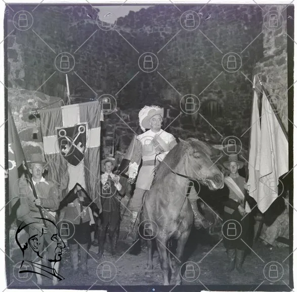 medeltid, riddare, häst, flaggor, borg, kostymer, historisk, teater, uppträdande, kläder, grupp, män, staty, tradition, ceremoni, svartvitt, gammal, kultur, fest, scen, rekvisita, konst, fotografering, dramatik, föreställning, utklädnad, evenemang, historia, symboler