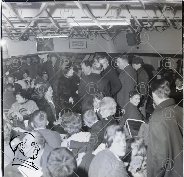 människor, samling, fest, inomhus, svartvitt, 1960-tal, kläder, socialt, samtal, glädje, barn, vuxna, café, publik, interaktion, tradition, nostalgisk, gemenskap, evenemang, historisk, ansikten, skratt, stämning, aktivitet, minnen, kultur, festligheter, lokal, sällskap, mingel
