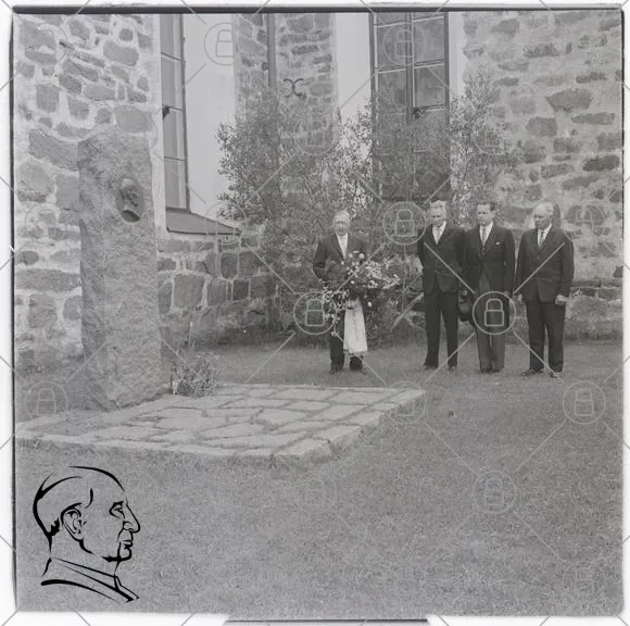 minnesmärke, ceremoni, blommor, män, kostymer, sten, trädgård, gräs, historisk, monument, växtlighet, fotografi, svartvitt, tradition, samling, hyllning, plats, byggnad, stenläggning, högtidlighet