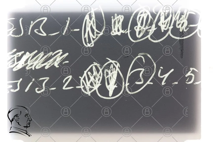 text, skrivna siffror, handskriven, svart bakgrund, vit färg, anteckningar, otydlig text, nummer, matematik, skrift, noteringar, 3.1, 3.2, 3.4, cirklar, streck, suddigt, skiss, dokument, information, lista
