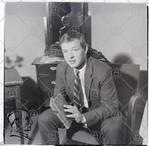 man, bok, spegel, skrivbord, stol, 1960-tal, kläder, inomhus, svartvitt, möbler, interiör, ansiktsuttryck, vintage, fotografi, retro, stil, heminredning, belysning, kammare, personlig, uttryck, kultur, tidsepok, manlig, sittande, hand, objekt, fokus, detaljer