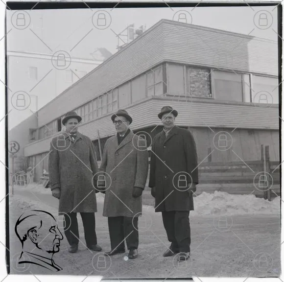 män, kostymer, hattar, vinter, snö, byggnad, svartvitt, historisk, gator, fotografering, 1900-tal, stil, kläder, tre, stående, utomhus, arkitektur, traditionell, landskap, gammal, stad, kultur, gemenskap, vänner, minnen, nostalgi, fotografering, porträtt, samling