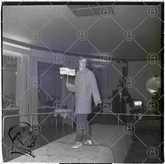modell, catwalk, barn, mode, 1960-tal, kläder, fotografering, evenemang, publik, skylt, mannekäng, inomhus, fest, stil, retro, svartvitt, presentation, scen, utställning, ungdom, smycken, frisyr, leende, socialt, aktivitet, tradition, kultur, underhållning, modevisning, vintage