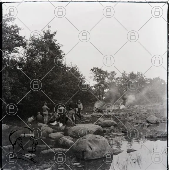 natur, skog, människor, sten, vatten, rök, läger, utomhus, aktiviteter, samling, eld, landskap, svartvit, fotografering, sommar, rekreation, grupp, tradition, camping, avkoppling