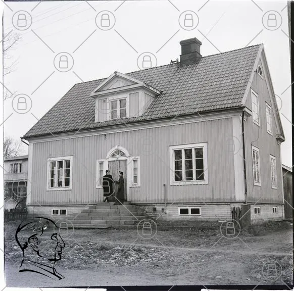 hus, byggnad, trä, fönster, tak, trappa, människor, svartvit, gammal, arkitektur, landskap, utomhus, gård, stil, historia, två personer, entré, dörr, grönska, gata, fotografering, traditionell, svensk, hem, kvarter, kultur, miljö, vintage, landsbygd, bostad
