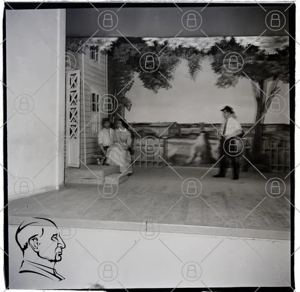 teater, scen, skådespelare, kulisser, träd, hus, dörr, föreställning, inomhus, svartvitt, publik, konst, kultur, uppträdande, dramatik, scenografi, kostymer, dialog, teaterpjäs, skådespeleri