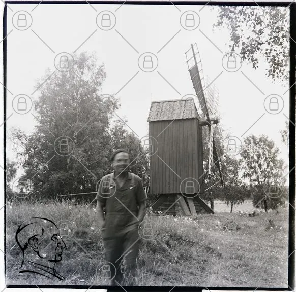 vindmolle, man, natur, träd, gräs, svartvit, landskap, gammal, traditionell, byggnad, jordbruk, svensk, landsbygd, historia, sommar, foto, rural, kultur, väderkvarn, fält, blomma, stillhet, miljö, hantverk, fotografering, vintage, retro, skugga, manuell