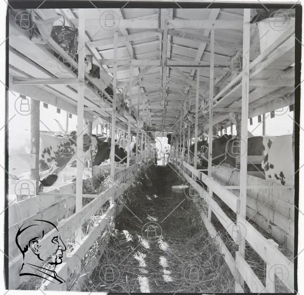 ko, ladugård, stall, halm, djur, jordbruk, svartvit, inomhus, foder, gård, lantbruk, utrymme, betesmark, mjölk, lantbrukare, traditionell, struktur, trä, tak, rader, djurhållning, landsbygd, miljö, skötsel, arbete, natur, produktion, ekonomi, landskap