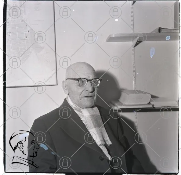 gammal man, glasögon, skägg, kostym, scarf, inomhus, svartvitt, sittande, kontor, hylla, karta, ansikte, uttryck, äldre, kläder, stil, fotografi, porträtt, människa, interiör