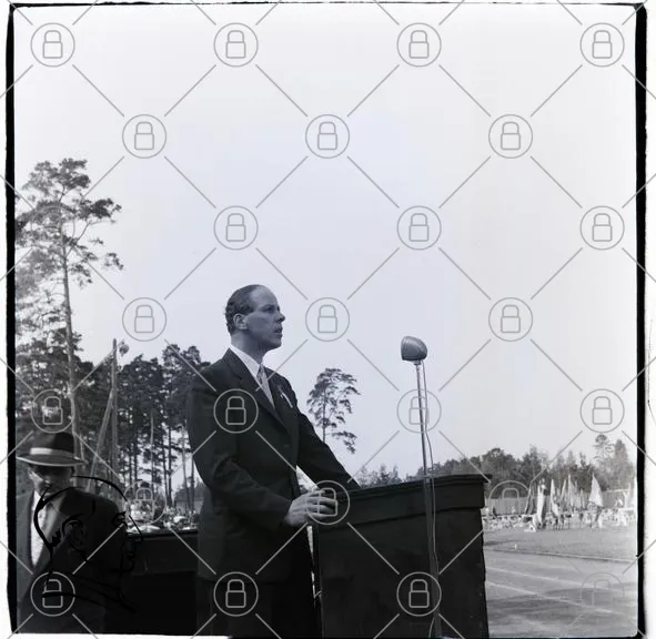 talare, mikrofon, utomhus, kostym, träd, publik, podie, man, evenemang, himmel, hatt, formellt, skog, dagtid, tal, ceremoni, natur, människor, scen, park, högtalare, konferens, möte, samling, officiellt, mikrofonstativ, allvarlig, presentation, åhörare, gräsmatta
