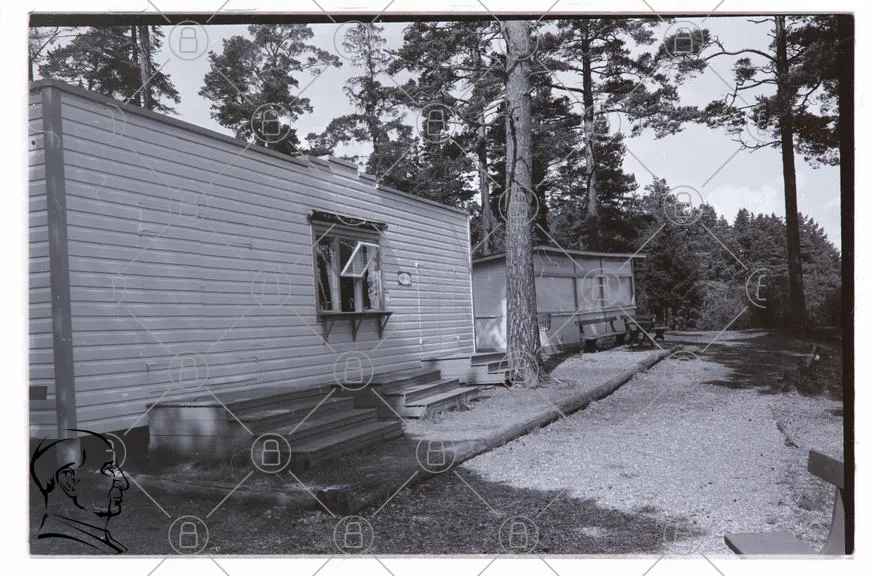 hus, fönster, träd, skog, grus, väg, byggnader, utomhus, svartvit, landskap, natur, sommar, arkitektur, bostad, stuga, avstånd, stillhet, miljö, enkelhet, hem