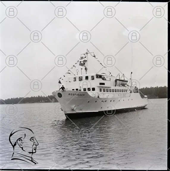 fartyg, Rospiggen, sjö, vatten, segling, transport, marin, båtliv, landskap, flaggor, vit, svartvit, resa, turism, hav, skärgård, passagerare, ångbåt, traditionell, historia, nöje