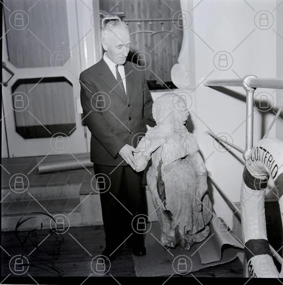 man, kvinna, docka, svartvitt, inomhus, båt, livboj, kläder, 1900-tal, möte, leende, trä, golv, dörr, interiör, traditionell, staty, konst, fotografi, historia, vintage, porträtt, skulptur, barn, vuxen, gammal, stil, kultur, minne