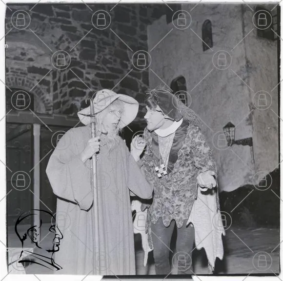 teater, skådespelare, kostymer, gammal man, ung man, stav, medeltid, scen, ljus, kläder, dialog, föreställning, historisk, dramatik, teaterkuliss, svartvitt, karaktärer, uttryck, roll, kostymdesign, rekvisita, skådespel, teaterkonst, tradition, kultur, underhållning, scenkonst, berättande, gestikulation, interaktion, publik