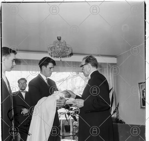 bröllop, ceremoni, man, kvinna, präst, klänning, kostym, rum, fönster, blommor, fotografi, 1960-tal, tradition, familj, vitt, svartvitt, ljus, dekoration, samling, fest