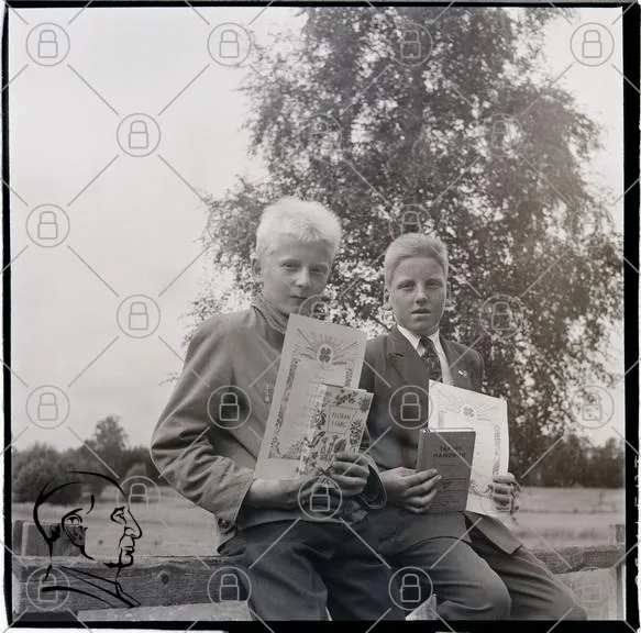 pojkar, böcker, kläder, svartvitt, natur, trä, dokument, skoluniform, ungdomar, fotografering, 1900-tal, landskap, certifikat, utbildning, vänner, sommar, historia, tradition, lek, gemenskap, stil, nostalgi, barn, porträtt, utomhus, minnen, kultur, skola, prestation, ungdomskultur