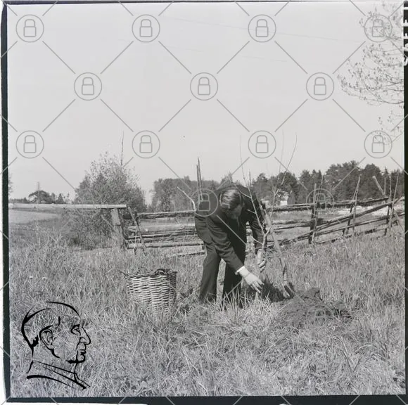 plantering, träd, jord, man, korg, landskap, grönska, skog, arbete, natur, gammal, svartvit, utomhus, tradition, växt, fält, staket, vår, miljö, odling, växa