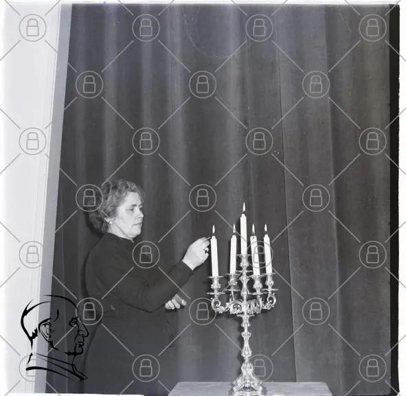 kvinna, ljusstake, tända ljus, gardin, svartvit, inomhus, ceremoni, tradition, klänning, stearinljus, mörkt hår, dekoration, bord, interiör, formell, belysning, vintage, klassisk, scen, kultur