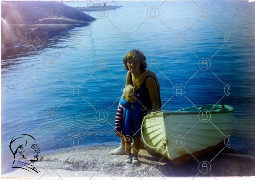 barn, kvinna, båt, vatten, klippor, sommar, natur, familj, strand, lek, sol, blått, kläder, skratt, minnen, semester, hav, skärgård, fotografering, avslappning, glädje