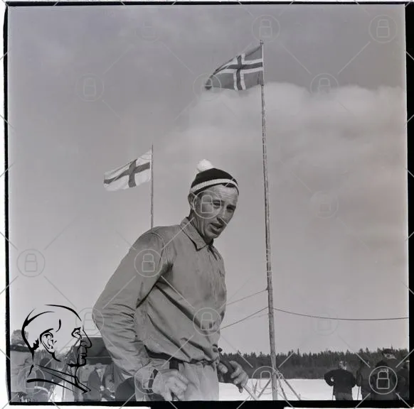 man, flaggor, Norge, Finland, vinter, snö, utomhus, kläder, svartvitt, landskap, himmel, natur, sport, expedition, tradition, kultur, historia, fotografering, män, aktivitet, friluftsliv, skandinavien, resor, äventyr, gemenskap, samarbete, team, arbete, miljö, väder