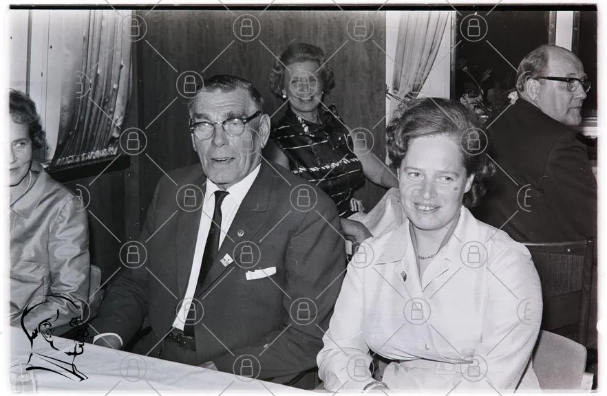 svartvit, foto, människor, leende, kläder, 1960-tal, fest, bord, kvinnor, män, glasögon, frisyrer, inomhus, bakgrund, porträtt, samling, tradition, stil, uttryck, sällskap