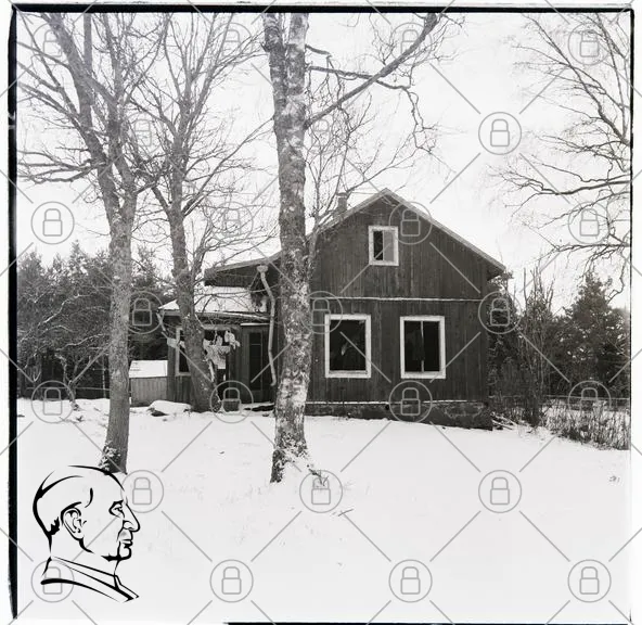 hus, vinter, snö, träd, landskap, byggnad, natur, stillhet, skog, gammal, svensk, arkitektur, utomhus, kallt, svartvitt, ensamt, fönster, tak, gård, rural, idyll, lugn, traditionell, miljö, hem, landsbygd, vinterlandskap, grönska, avskildhet, enkelhet