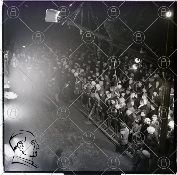 publik, folkmassa, natt, evenemang, ljus, scen, fotografering, människor, kläder, hattar, spänning, underhållning, tradition, samling, åskådare, festival, historisk, svartvitt, utomhus, kamera, uppträdande, stämning, ljud, aktivitet, nöje, kultur, gemenskap, minnen, festligheter, upplevelse