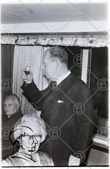 fest, människor, glas, kläder, svartvitt, leende, inomhus, bord, samtal, 1900-tal, eleganta, sällskap, middag, kvinnor, män, hår, fönster, gardiner, uttryck, socialt, samvaro, tradition, stil, drink, fotografi, minnen, nostalgi, interiör, festligheter, samling