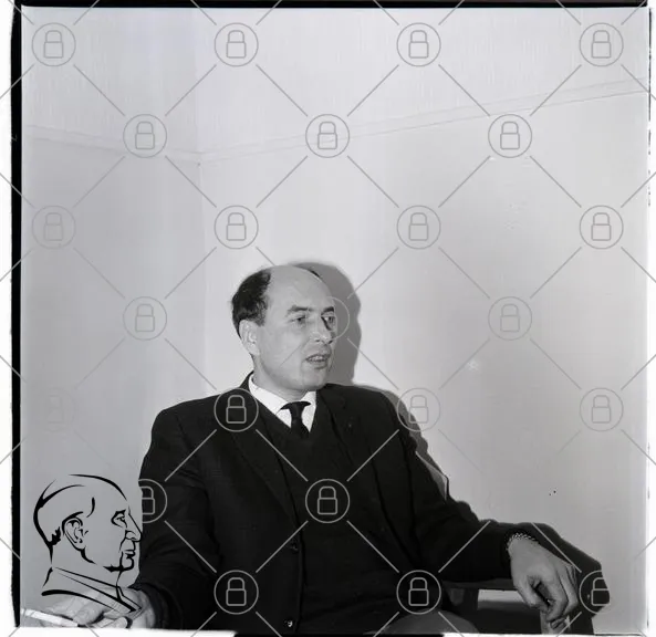 man, svartvitt, porträtt, sittande, kläder, kostym, inomhus, rum, diskussion, uttryck, 1900-tal, professionell, ansiktsuttryck, stil, formell, fotografi, historia, person, interiör, samtal