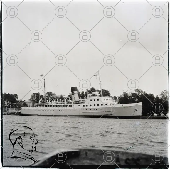 fartyg, båt, sjöfart, hamn, vatten, segel, passagerare, transport, historia, svartvit, landskap, moln, trä, motor, resor, kust, Sverige, sjö, ankarplats, traditionell