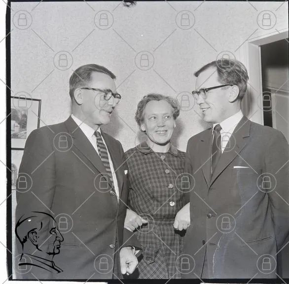 svartvit, foto, människor, leende, kläder, 1960-tal, inomhus, interiör, glasögon, kostymer, kvinna, män, familj, vänskap, samtal, porträtt, traditionell, gammal, nostalgisk, social, samvaro, heminredning, väggkonst, fotografi, minnen, uttryck, ansikten, stil, klädsel, tidsepok