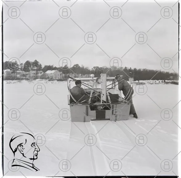 snö, is, män, maskin, vinter, sjö, landskap, transport, friluftsliv, aktivitet, kallt, natur, fordon, arbete, tradition, svartvitt, foto, historia, avstånd, byggnader
