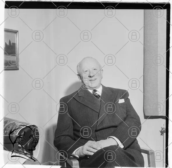 man, kostym, leende, sittande, inomhus, möbler, vägg, fönster, porträtt, vintage, svartvitt, interiör, kavaj, slips, gammal, fotografi, klassisk, elegant, kontor, personlig, stil, 1900-tal, traditionell, avslappnad, uttryck, ansikte, rum, inredning, konstverk