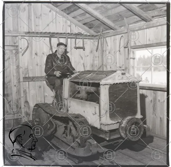 man, maskin, traktor, verkstad, trä, tak, fönster, verktyg, gammal, snö, jordbruk, landskap, inomhus, rustik, mekanik, historisk, foto, industri, hantverk, skog, utrustning, arbete, traditionell, jordbruksmaskin, motor, metall, sittande, kläder, hatt
