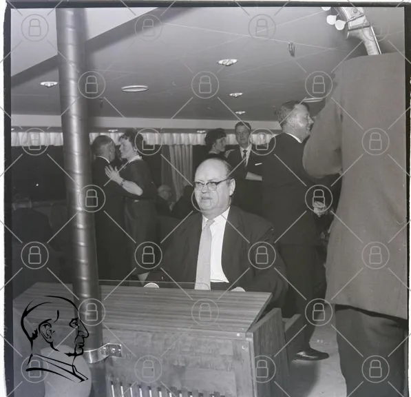 fest, dans, kläder, 1950-tal, svartvitt, sällskap, musik, underhållning, människor, leenden, socialt, båt, inomhus, eleganta, stämning, cocktail, mingel, par, bord, stolar, ljus, dekoration, skratt, minnen, nostalgisk, samvaro, festlokal, glädje, tradition, kultur